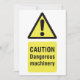 Um sinal amarelo que diz cuidado com máquinas perigosas. Esta design parece realmente eficaz neste Convite