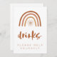 Esta placa de mesa de bebida imprimível apresenta um arco-íris laranja queimado boêmico com um sol no centro e uma fonte fofa manuscrita. Edite a maioria dos textos para atender às necessidades do seu evento. 💜 CORES SÃO EDITÁVEIS! Clique em 'editar design' para alterar as cores do seu partido.