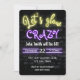 Néon brilhante "Vamos Louco" em fundo de tijolos escuros para 65 anos. Todo o texto pode ser alterado, exceto o sinal de neon.