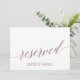 Este elegante cartão "reservado" em caligrafia dourada-rosada é perfeito para um casamento simples. O cartão é frente e verso (imprime dos dois lados). O design rosa-bege apresenta um cartão minimalista decorado com tipografia romântica e caprichosa em folha dourada-rosada falsa. Use esses cartões para reservar cadeiras ou mesas na cerimônia de casamento, recepção ou qualquer evento.
