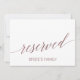 Este elegante cartão "reservado" em grafite dourado-rosado é perfeito para um casamento simples. O cartão é frente e verso (imprime dos dois lados). O design rosa suave apresenta um cartão minimalista decorado com uma tipografia romântica e caprichosa em folha de ouro cor-de-rosa falsa. Use estes cartões para reservar cadeiras ou mesas na cerimônia de casamento, recepção ou qualquer evento.