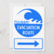 Um sinal de estrada marcando a rota de evacuação do tsunami na ilha de Vancouver - Colúmbia Britânica, Canadá.