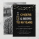 Convite de Aniversário de 90 anos Adulto com Sinal Neon Cheers & Beers | Convites de Aniversário Adulto em um fundo preto com uma foto personalizada que você pode substituir pela sua. O texto pode ser facilmente personalizado com seus detalhes para um design perfeitamente personalizado. Visite o Youtopia Oficial para mais e entre em contato conosco para qualquer design personalizado.
