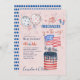 Este bonito aquarela de 4 de julho (pequeno bolo de fogos de artifício EUA sinaliza em branco vermelho e azul sobre um fundo rosa) o convite do Chá Baby Girl tem campos de modelo de texto em ambos os lados para que você possa adicionar todos os detalhes do evento. Este convite também pode ser usado como convite de festas ou anúncio revelador de gênero.