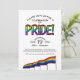 Este convite divertido foi feito para um Orgulho gay ou Partido Pridefest. Apresenta uma fileira de bandeiras do orgulho arco-íris e leitura de texto: Por favor, junte-se a nós para celebrar o orgulho, com a palavra "orgulho" soletrada em letras coloridas arco-íris. Excelente maneira de convidar seus amigos e família para celebrar o amor!
