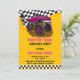 Espero que gostem deste fundo amarelo com uma bandeira branca e negra com um caminhão de monstro fuchsia na lama.