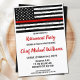 Celebre sua aposentadoria e convide amigos e família para sua aposentadoria de bombeiro com este Thin Red Line Firefire Invitation - design americano de bandeira americana em cores de bandeira de bombeiro, design angustiado. Personalize com nome, departamento de incêndio, local de endereço e detalhes de rsvp. Este convite para aposentadoria de bombeiros pode ser usado para a graduação de bombeiros, simplesmente mude o texto ao personalizar.Consulte nossa coleção para combinar presentes, favoritos para festas e suprimentos de aposentadoria de bombeiros. COPYRIGHT © 2020 Judy Burrows, Black Dog Art - Todos Os Direitos Reservados. Invasão de Sinalizador Fino de Linha Vermelha do Partido de Aposentação do Bombeiro