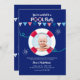 Um convite para o tema do verão, em azul profundo, com bandeiras dos partidos náuticos e um preservador de vida que serve como quadro para sua foto favorita.<a href='https://www.freepik.com/free-vector/nautical-background-with-garlands-and-life-preserver_994562.htm'>Concebida por Freepik (). </a>() A placa é fácil de personalizar com o seu texto, fonte, cor da fonte, opções de forma de papel e escolha de seis tipos de papel.<br/>() Não exatamente o que você está procurando? Todos os nossos produtos podem ser personalizados para atender às suas necessidades sem custos adicionais.<br/>() Basta entrar em contato conosco em heartfelthelper@gmail.com.<br/>() Coordenando os produtos disponíveis: Apenas nos pergunte!