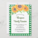 Planejar uma reunião de família? Convide a sua família para a reunião com este convite para a reunião floral da família, que é decorado com girassóis de aquarela e folhagem num fundo de gingham verde. Facilmente personalizável. Use a Ferramenta Design para alterar o tamanho, o estilo ou a cor do texto. À medida que criamos a nossa trabalho de arte, não encontraremos esta imagem exata de outros designers. Original Watercolor © Michele Davies.