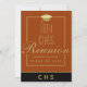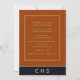 Mande seus colegas de 10 turmas de reunião de turma nosso convite de cartão plano moderno. Esta elegante modelo de design apresenta um fundo laranja e preto com uma falsa tipografia dourada que lê "10ª Reunião de Classe" com o seu nome escolar e ano para personalizar Abaixo está o monograma da sua escola. A parte de trás do cartão tem mais detalhes de celebração para você personalizar. Concebido pelo artista mundialmente famoso ©Tim Coffey.