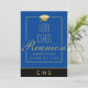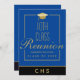 Mande seus colegas de 10 turmas de reunião de turma nosso convite de cartão plano moderno. Esta elegante modelo de design apresenta um fundo azul e preto com uma falsa tipografia dourada que lê "10ª Reunião de Classe" com o nome da sua escola e o ano para personalizar Abaixo está o monograma da sua escola. A parte de trás do cartão tem mais detalhes de celebração para você personalizar. Concebido pelo artista mundialmente famoso ©Tim Coffey.