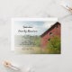 Personalize o encantador convite à Reunião da Família Rustic Red Barn para convidar parentes para o seu encontro casual, mas clássico. Este convite à família temática de país, que é um pouco personalizado, apresenta uma fotografia em estilo fazenda de um celeiro de madeira ruidoso vermelho com árvores verdes altas no fundo. Inpo perfeito ou ideia para um evento informal de fazenda ou festa de celeiro. Disponível como um convite impresso para envio por correio ou como um download digital para fácil compartilhamento digital online.