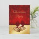 Ilustração de Natal elegante e única, com 2 sinos de Natal de ouro com arco vermelho e fita em diferentes planos: fundo vermelho de um boque e fundo ouro de flocos de neve.