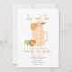 "Pequena fofa" Sip e veja para um novo bebê com ilustração de um suavização de laranja em um jarro de mason.
