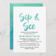 Este sorteio de caligrafia aquática e ver o convite é perfeito para os meninos de verão conhecerem a festa do bebê. O design de diversão e enérgico apresenta um bonito verde-lacrimogêneo e uma fonte de script de cores aqua azul-ombre.