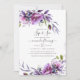 Violeta empoeirada e penugem floral roxa e veja o convite com a elegante tipografia de escrita manual projetada para ser rápida e facilmente personalizada de acordo com as especificidades do seu evento.