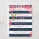 Bold e moderno marinho, azul e faixa branca, com florais cor-de-rosa brilhante e um sotaque em brilho dourado falso, fazem este adorável Sip & Veja o convite perfeito para a sua próxima ocasião