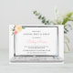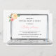 Um encontro virtual e saudação é uma alternativo excelente de apresentar o bebê aos entes queridos perto e longe que não podem receber o bebê pessoalmente. Este convite virtual apresenta uma ilustração de laptop de aquarela com flores delicadas no canto superior do design. Personalize com suas informações ou clique em "Clique para personalizar mais" para editar estilos de fonte, tamanho e cores.