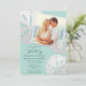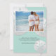 Este elegante convite do site de destino da praia de 2 fotos marítimas apresenta sua própria foto sobre um trio de dólares de areia branca tropical e um elegante roteiro de caligrafia escrito à mão sobre um fundo verde de vidro marinho. A parte de trás do cartão traz outra foto e seu site de casamento, levando seu convidado a mais informações sobre seu casamento. Uma maneira maravilhosa de convidar seus hóspedes para o seu casamento tropical, litoral, náutico ou oceanfront no Havaí, Flórida, Califórnia, México ou outro local de casamento de destino. Fotografias da areia dólares e design © por T.K. Goforward, todos os direitos reservados.