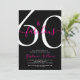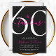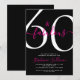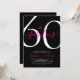 Sixty and Fabulous script, a minimal black and pink modern 60th birthday invitation that you can personalize and send out for your sixtieth birthday party. The words "60 and Fabulous" are set in a popular script font. The text colors can be changed using the edit menu.