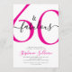 Sixty and Fabulous script, a minimal pink-and-black modern 60th birthday invitation that you can personalize and send out for your sixtieth birthday party. The words "60 and Fabulous" are set in a popular script font. The text colors can be changed using the edit menu.
