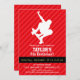 skate, skater, skatista, skatista, extreme branco, design de silhueta esportiva em vermelho, padrão de faixas vermelhas na diagonal. Presente perfeito para bebês, crianças, crianças, adolescentes ou adultos! Personalizado o design, adicionando o nome de uma criança ou texto personalizado com uma fonte branca atlética e desportiva. Visite nossa loja, Festa de aniversário House, para mais produtos personalizáveis de excelente para garotos e meninas!