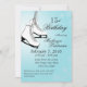Flocos de neve bonito e skates de gelo sobre um fundo azul, convite de aniversário de patinação de gelo. Alterar texto como preferido.