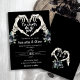 O Coração De Esqueleto Gótico Até A Morte Fazer Convite Para Casamento Negro. Um convite de casamento moderno e minimalista floral e de Halloween, com coração de esqueleto em forma de coração, roteiro de caligrafia e fundo negro. Você pode personalizar o texto, o estilo da fonte, a cor e o tamanho em frente e atrás do convite. Por favor, foi livre de me contactar para encontrar itens correspondentes.