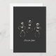 Ilustración en blanco y negro de un trio de esqueletos danzando.