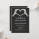 Celebre o seu casamento gótico ou de Halloween com o nosso Convite Coração de Mãos de Esqueleto, com mãos de esqueleto incrivelmente bonitas formando um coração no topo. Criado com fontes sans-serif modernas e elegantes, este convite define um tom na moda e estranho, convidando seus convidados a compartilhar no seu dia especial com um toque de elegância assustadora.