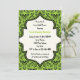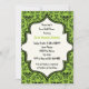 Skulls damask green, padrão negro, chá de panela de casamento do Halloween. Este design formal e elegante apresenta um padrão floral e crânio úmido e uma moldura de marfim no centro. Design clássico, mas contemporâneo, com fonte vintage. Design elegantemente assustador, perfeito para casamentos outono góticos ou de Halloween.