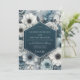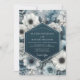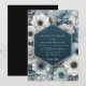 A deep, moody ambiance is created with a rich palette of slate blues and soft whites. Delicate blooms reminiscent of anemones and roses are artfully arranged, evoking a sense of twilight elegance. This design is perfect for an intimate, atmospheric event.