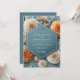 Evoke an air of sophisticated autumn elegance with this stunning botanical design. Lush marigolds in warm orange tones and creamy white chrysanthemums pop against a cool, dusty slate blue backdrop. Delicate, muted foliage is artfully woven throughout, creating a rich tapestry perfect for a chic fall union.