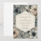 A deep, moody bloom design featuring lush florals in rich slate blue and muted cream tones. The artwork evokes a sense of romantic elegance with intricate botanical details. This striking palette creates a sophisticated and enchanting atmosphere for your special day.
