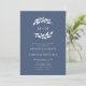 Slate Blue Olive Branch Monograma Wreath Invitation... Nosso convite de casamento de dois lados apresenta uma coroa branca de monograma de silhueta de ramos de oliveira em um fundo azul de slate chic seguido de texto de convite em serif elegante e tipografia sans serif. Salve o papel, incluindo o código QR do seu site de casamento no verso do convite, permitindo que seus convidados RSVP online e vejam todos os detalhes normalmente enviados em cartões separados no pacote de casamento. O exemplo de código QR do site de casamento e o texto do convite podem ser facilmente revisados com seus próprios detalhes usando o modelo de personalização.