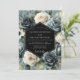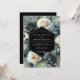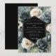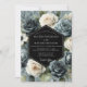 This design features a rich tapestry of deep slate blue and creamy ivory roses. Lush, detailed floral blooms create a romantic and opulent atmosphere, perfect for a sophisticated affair. The deep, moody palette evokes a sense of timeless elegance.