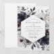 This design captures a moody and romantic aesthetic with its dramatic botanical composition. Painterly florals in deep slate blue, charcoal, and soft white are beautifully arranged with dusky foliage. Touches of dark burgundy add depth, creating a sophisticated and artistic look ideal for an elegant seasonal affair.
