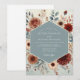 Embrace an earthy and artistic aesthetic for your special day. This design showcases a beautiful arrangement of painterly botanicals in a warm, autumnal palette. Rich tones of terracotta and rust are elegantly contrasted with dusty slate blue foliage. Delicate roses and anemones create a romantic, bohemian atmosphere.