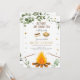 Este adorável convite apresenta as nossas ilustrações desenhadas à mão e à fogueira com sotaques de água verde.
