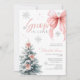 Celebrate the season of love with this elegant Snow in Love bridal shower invitation, featuring a watercolor Christmas tree with pink coquette bows, shimmering silver snowflakes, and soft blush accents. The romantic winter palette brings a cozy yet refined touch — perfect for bridal showers, winter weddings, or festive engagement gatherings.