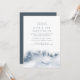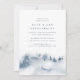As madrinhas de inverno elegantes fazem um convite para o brunch, com uma cor d'água, mostrando uma paisagem de montanha nevada pontilhada com silhuetas de pinheiros em tons sujos de azul e cinza. Personalize com os detalhes do brunch das suas damas de honra em caracteres de cinza azul-chic. Uma bela escolha para os elegantes tijolos de inverno em zonas montanhosas, florestais ou de neve.