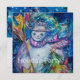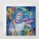 Pintura acrílica colorida, branca e engraçada, de Búlgaro Lumini (c).Noite de inverno com boneco de neve, árvore de natal, brinquedos, gato, coruja, marionetas, plantas ornamentais e bagas ocas em amarelo vibrante, azul, verde, vermelho, branco rosa, cores.