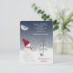 Bonito boneco de neve com chapéu vermelho e cachecol segurando um ornamento de estrela de ouro para pinheiro em flocos de neve.