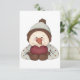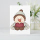 Um bonitinho bonitinho vestido com um chapéu com nariz de cenoura segurando um coração de amor. Este design de amor de boneco de neve parece excelente neste Convites