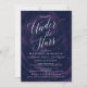 Celebrar o morcego mitzvah com este belo design de convite do tema Estrelas. Um céu azul e violeta de meia-noite profundo é cheio de pequenas estrelas brancas com adoráveis letras cursivas de pincel dá a este convite estilo moderno e elegância. Também estão disponíveis placas de gabinete correspondentes e envelopes azuis da meia-noite.