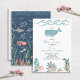 Seu bebê está virando um! Convidem seus convidados especiais com este adorável moderno sob o convite do tema do mar que inclui uma baleia pintada à mão, coral e animais oceânicos, com tipografia escrita escrita com letra de mão. A parte de trás da carta apresenta uma ilustração do tema do oceano submarino. Copyright Elegant Invites, todos os direitos reservados.