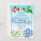 Convidado de chá de fraldas do garoto personalizado. Azul sob o mar - convite para chás de fraldas com desenho animado bonito, desenhado à mão - polvo, caranguejo, golfinho, peixe-estrela, peixe e tartaruga marinha.