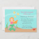 Convite de aniversário bonito e do divertimento da sereia que caracteriza uma menina pequena dos desenhos animados da sereia com o cabelo alaranjado que senta-se em uma rocha. Está fazendo uma onda amigável aos peixes e ao caranguejo que são próximos e aos convidados do partido que são convidados ao partido. Um bonito e um feminino convidam para miúdos e excelente para a sereia ou sob o mar, underwater, oceano e associam festas de aniversário temáticos. Personalize facilmente com sua informação.