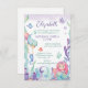 Mundo submarino com sereia e cavalo marinho em verde e roxo