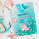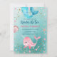 Sob o tema Mar, convite de aniversário apresenta uma cauda de sereia, um narwhal rosa giro (unicórnio do mar), conchas, estrelas-do-mar e uma borda de ouro e estrelas cor-de-rosa em um fundo de lavagem da água azul-oceano. Estoque da KL original